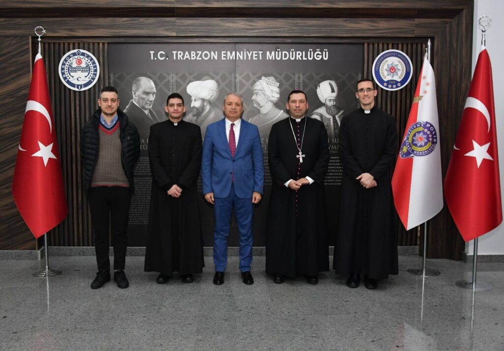 4 Şubat Çarşamba günü bazı rahipler ve din adamları, Trabzon’daki Hristiyanlık açısından önemli bazı yerleri ziyaret etme fırsatı buldular: Sümela, Ayasofya, Kızlar Manastırı, Aziz Anna Kilisesi ve diğer bazı mekânlar. Aynı gün Mons. Antuan, Peder Christofer, Servet ve ben Trabzon İl Emniyet Müdürü’nü ziyaret ettik. Bu Emniyet Müdürü ile ikinci görüşmemizdi; ilki Aralık 2025’te gerçekleşmişti. 4 Şubat’taki bu ziyarette Mons. Antuan, tespih koleksiyonu yaptığı için kendisine Papa Francesco ve Papa Leone tarafından bağışlanan bazı tespihleri hediye etti. Bu ziyaret, teşekkür etmek ve deneyimlerimizi paylaşmak için çok güzel bir fırsat oldu. İl Emniyet Müdürü bize çok yakınlık gösterdi ve yardım etmekten memnuniyet duyduğunu ifade etti. Biz de cemaatimizde sağlanan güvenlik için kendisine çok müteşekkiriz; zira kilisemizde 24 saat polis gözetimi sağlanmaktadır.