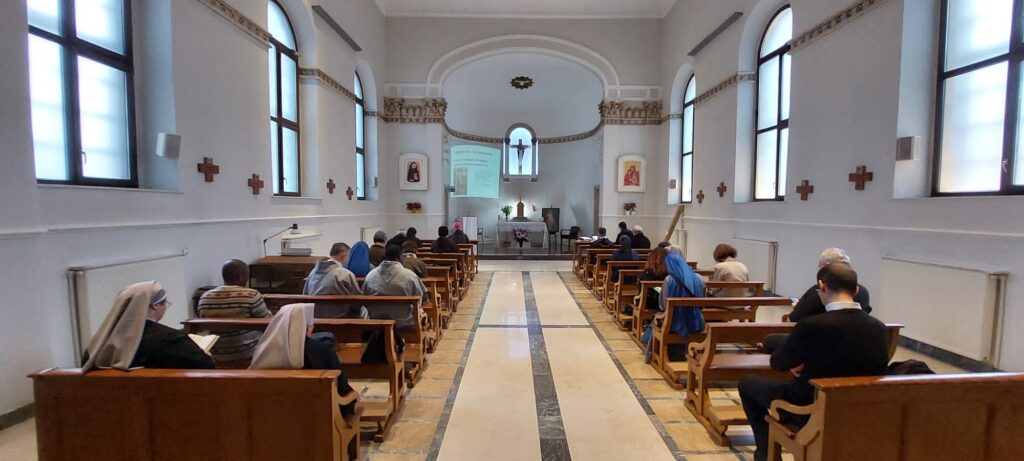 Karşılama kahvesinin ardından, herkes dua için şapelde toplandı ve ardından Monsenyör Kmetec, kutsal yaşam üzerine bir düşünceyle güne başladı: Allah’ın bir armağanı, bir mucize, örneği Kutsal Üçlü Birlik olan kutsal yaşam. Bu Üçlü Birlik, ilişki, açıklık, sevgi, tam ve eksiksiz bir armağandır. Bu Üçlü Birlik, inananların kalplerine yerleşir. Kilise içinde ve mükemmel bir birliktelik içinde, kutsanmışlar özellikle itaatkar yaşamaya çağrılırlar, her zaman Baba’nın isteğini yerine getiren Mesih’le birleşerek ve Tanrı’nın sesini ayırt etmeye ve dinlemeye özen göstererek. Kutsal Kitap’ta Hazreti İbrahim, kendinden, planlarından ve hayatından tamamen vazgeçmenin bir örneğidir. Biz de, insan sınırlarımızın ötesinde, İsa’nın ailesine ait olmamızı sağlayan bu itaat içinde, bu sadakate, bu imana çağrılıyoruz. Bu itaat, İsa’ya ve İsa ile birlikte, alçakgönüllülük ve gerçek özgürlük içinde sevgiden doğar.