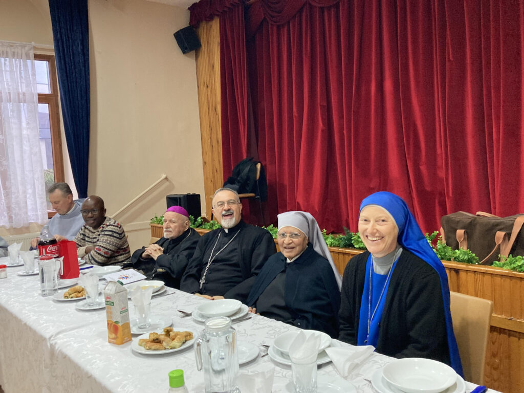 Ardından, Monsenyör Kmetec’in doğum gününü kutlamak için hep birlikte sevinç dolu vakit geçirdik. Daha sonra, URT’nin yeni seçilen başkanı Marie de Nazareth, tüm günü büyük bir özenle yönetti ve geleneksel olarak, bu yıl toplulukların birbirlerine gönderecekleri davetiyeleri çekilişle belirlemek üzere tüm katılımcıları davet etti. Marie de Nazareth, ayrıca iki yeni rahibe ve geçici olarak burada bulunan bir rahibi de hoş geldiniz diyerek karşıladı.