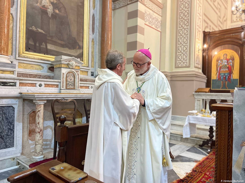 Ayin’in sonunda Başepiskopos, Santa Maria Kilisesi’ndeki hizmetlerinden dolayı Peder Pietro Mechelli’ye içten teşekkürlerini iletti: “Kilisemizin tarihinin, Fransisken Rahipler Topluluğunun tarihinin ve kişisel tarihimizin bağlantılı olduğu bu Kilisede kutladığımız bu son Ayinimizle teşekkür etmek için başka iyi bir fırsat olamazdı.